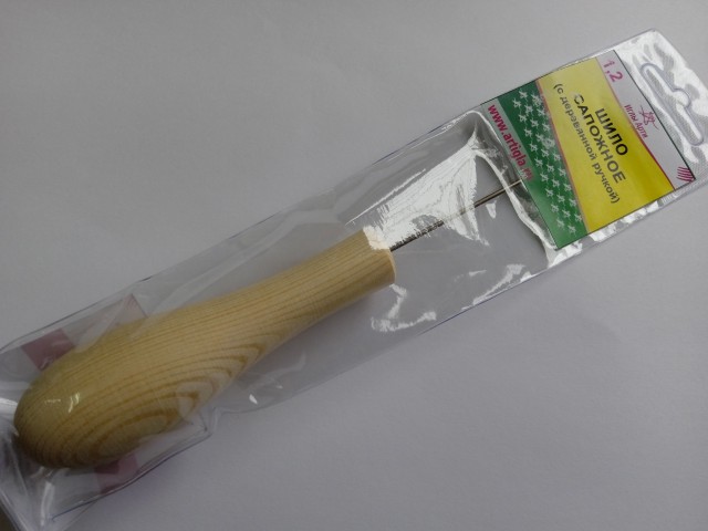 Шило сапожное с деревянной ручкой (с крючком) 2,5 с укороченной иглой для проколов плотных материалов |